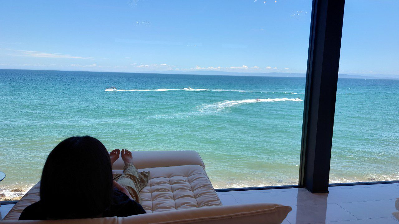 海を見下ろす大型ガラスで圧巻の大パノラマを独り占め